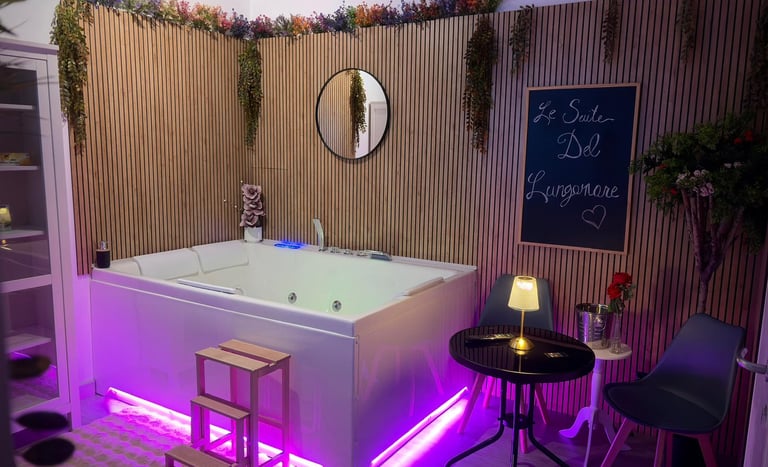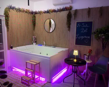 Suite con vasca jacuzzi extralarge! sala relax privata e cromoterapia in camera per un soggiorno super rilassante e indimenticabile.